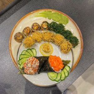 1 Temaki Jhow, 8 Hossomaki e 4 Gunkan Jhow.