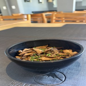 Cogumelo shitake salteado na manteiga com tempero do chef e finalizado com cheiro verde.