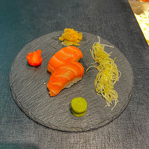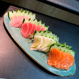 3 Sashimis de salmão, 4 Uramakis Filadelfia, 2 Hossomakis de salmão, 2 Gunkan Jhow e 4 Hot Filadélfia.