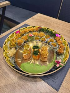 5 Uramaki do Cheff, 5 Uramaki Crispy Alho Poró, 4 Hot Crispy Alho Poró, 4 Hot Crispy Couve, 4 Hot Crispy Batata Doce, 4 Hot Crispy Cebola, 2 Gunkan Crispy Couve, 2 Gunkan Crispy Alho Poró e 2 Gunkan Crispy de Batata Doce